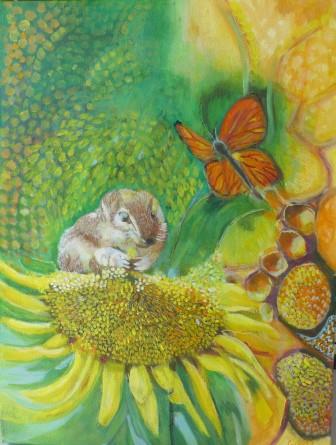 This little painting "Living the Dream,"was inspired by a picture of a squirrel making good use of available sunflower seed. He is having a ball and living the dream. Painted on cotton gallery wrapped canvas size 16"x12" this little mixed media painting will be appreciated by those who love animals and are inspired by their resourcefulness. Comes ready to hang.