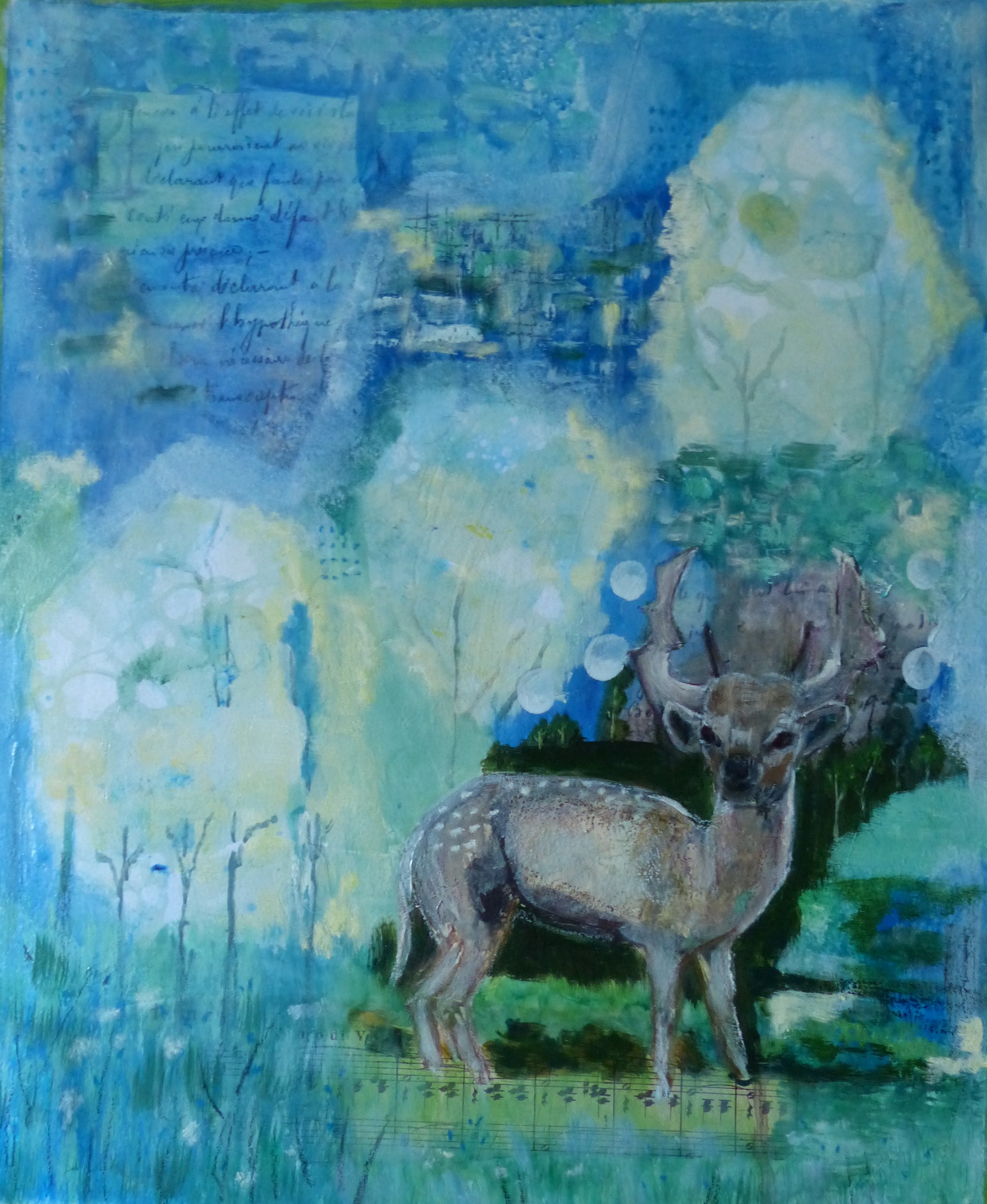 A deer "emerges", from the forest at dusk, light filters through the forest as the sun goes down. This mixed media acrylic and oil painting has been created on 100% cotton water color paper. 13"x16" It is a nod to my childhood, seeing the deer in wild in the Central Highlands of Tasmania. Comes ready to hang already framed. Certificate of authenticity included.