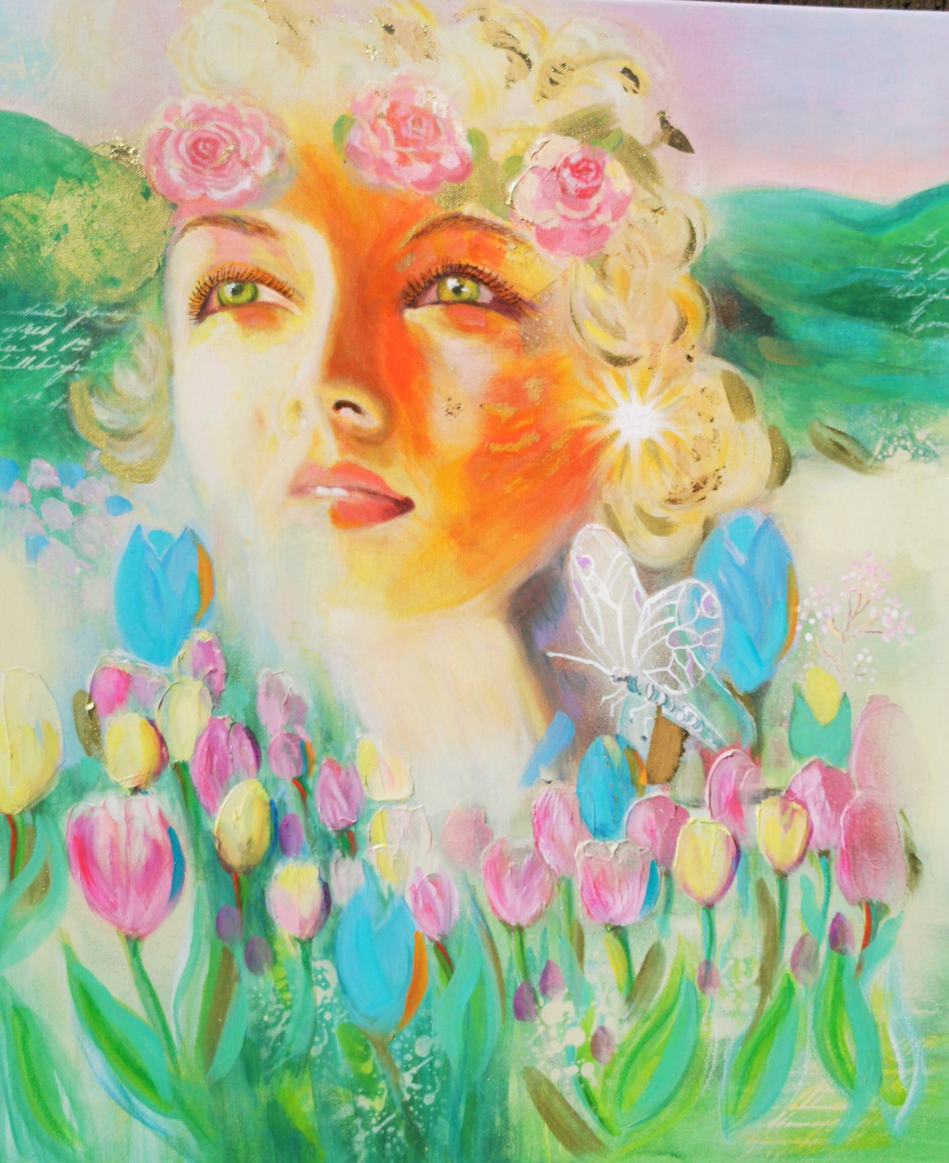 This painting is inspired by the feeling of being totally immersed in flowers and in the garden. I wanted to convey the peace, happiness and contentment experienced when walking in a beautiful garden, It maybe our own or someone else's but the experience is rea..